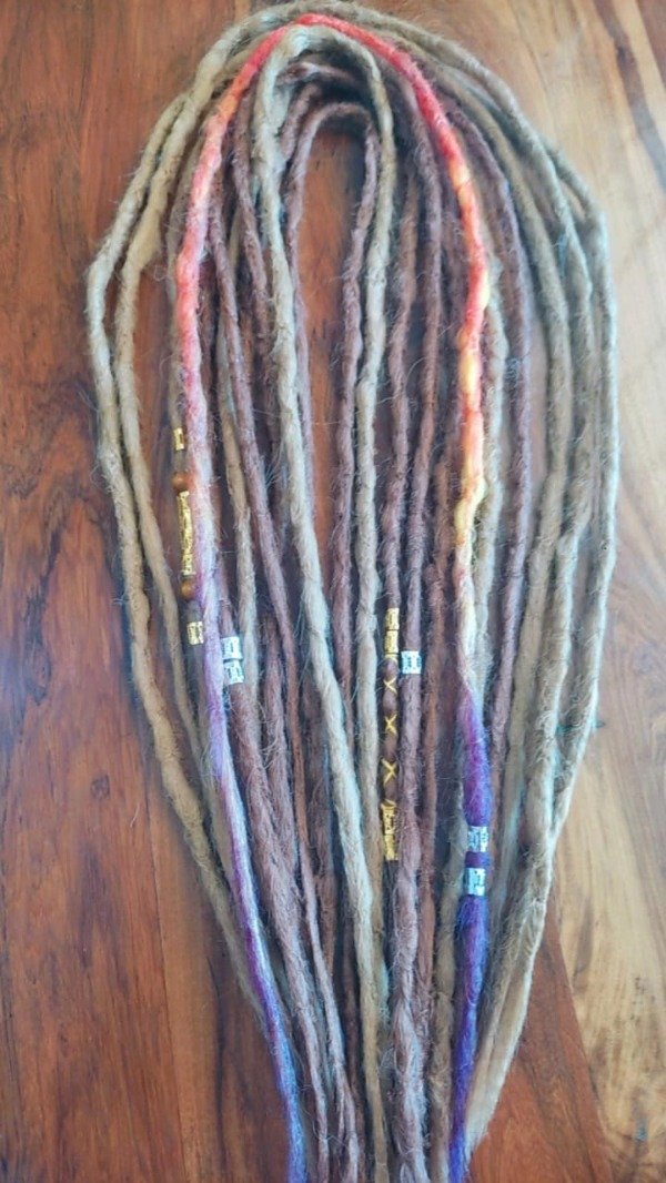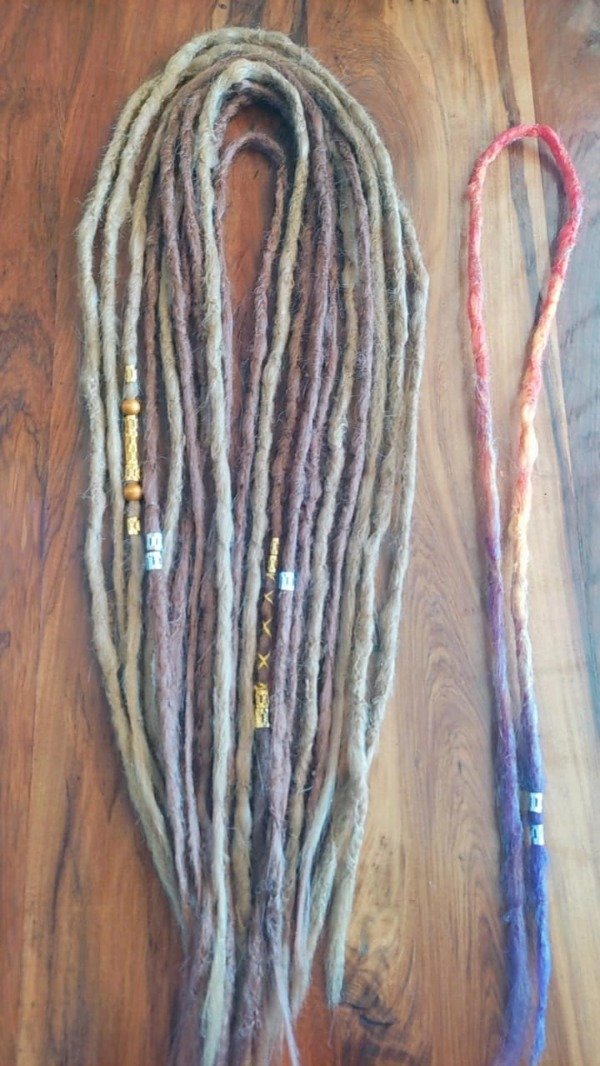 Set de 20 incluye : 10 rastas tejidas de1 metro aprox mas una rasta de regalo de colores . En total 11 que aplicadas (se aplica dobladas a la mitad y se trenza solo un extremo a tu cabello. En redes hay videos donde te explico el paso a paso )quedan 22 UNIDADES de 50Cm para cubrir CABEZA COMPLETA. Al ser sueltas podes usar menos si queres, solo en la nunca, o podes agregarlas a broches, hebillas colitas. Las podes usar como quieras.